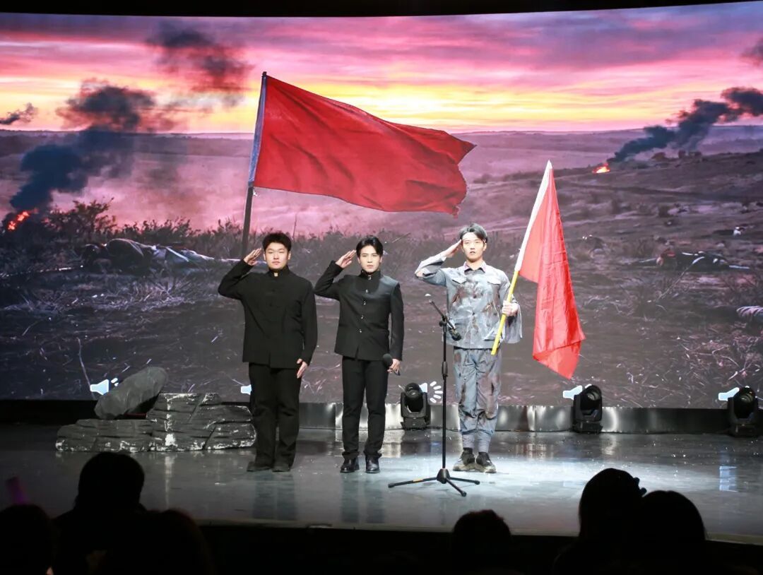 晚会以丰富多元的节目层层推进,交织历史回声与时代风采。红色情景朗诵《日落》与情景剧《破晓》以沉浸式的艺术语言,引领观众重回峥嵘岁月,在动人叙事中传递深沉的家国情怀与不灭的信仰力量;随后,节奏明快、活力四射的舞蹈《Fashion》与刚劲有力的跆拳道表演《太阳》相继登场,一柔一刚,生动勾勒出当代青年昂扬自信、热血奋发的精神风貌,展现出青春正当时的蓬勃朝气。
