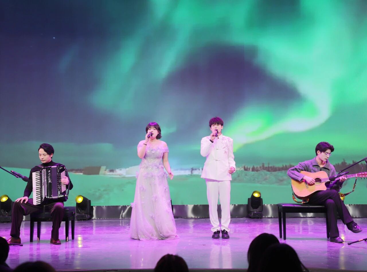 汇聚青春与梦想的节目,尽显传媒学子的青春活力与创意。师生共同深情演唱的歌曲《漠河舞厅》,用悠扬的歌声勾勒出细腻的情感画卷,引发全场共鸣;《What is love》舞蹈表演活力四射,用动感的节拍、轻快的舞步,展现出西译学子蓬勃的生命力;《声动无限》动画配音节目则充分彰显了传媒专业特色,学子们用多变的声线、丰富的情绪表达,赋予动画角色鲜活的生命力,让现场观众惊叹于他们专业功底的同时,也感受到数智传媒领域的无限可能。