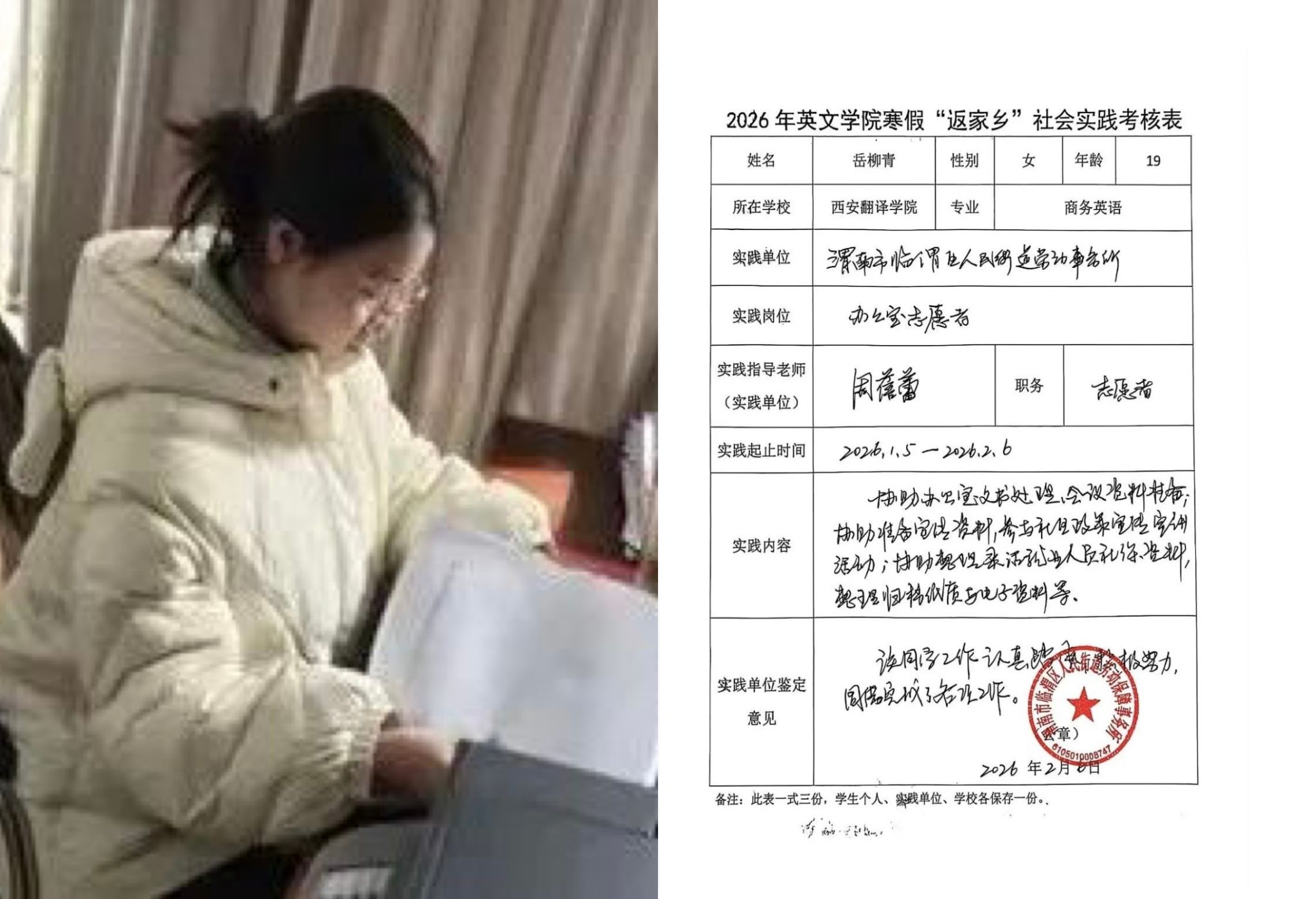 为深入学习贯彻习近平总书记关于青年工作的重要思想引导西译学子在实践中受教育、长才干学校扎实开展2026年寒假“返家乡”社会实践活动西译学予以饱满热情投身基层实践用行动诠释青春担当接下来让我们一同分享他们的实践故事吧!